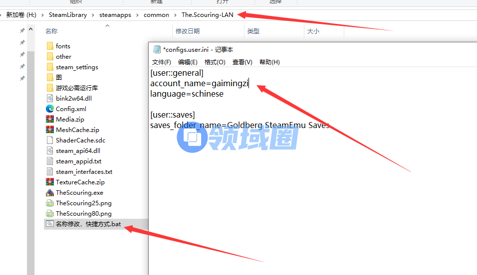 双击打开游戏目录下面的“名称修改,快捷方式.bat”,找到“account_name=gaimingzi”,把“gaimingzi”改成自己想要的名字保存。
