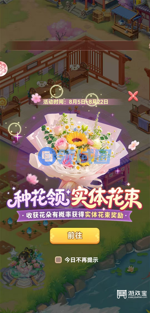 1、活动参与:在2025年8月5日至8月22日活动期间,玩家通过种植并收获虚拟花卉,有机会随机掉落「鲜花贺卡」。该贺卡是兑换真实鲜花的关键道具。