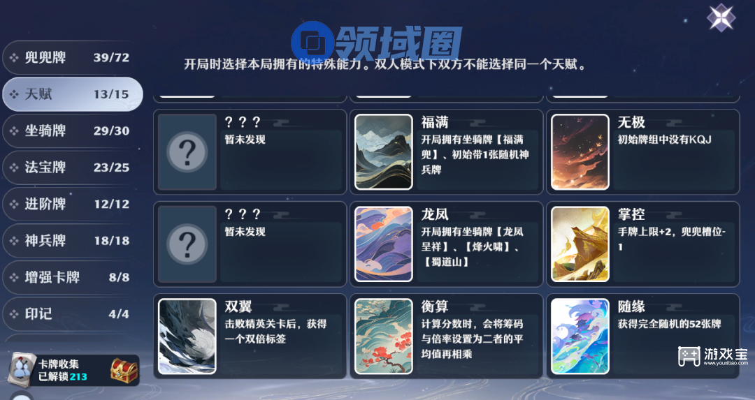 1、天赋选择: