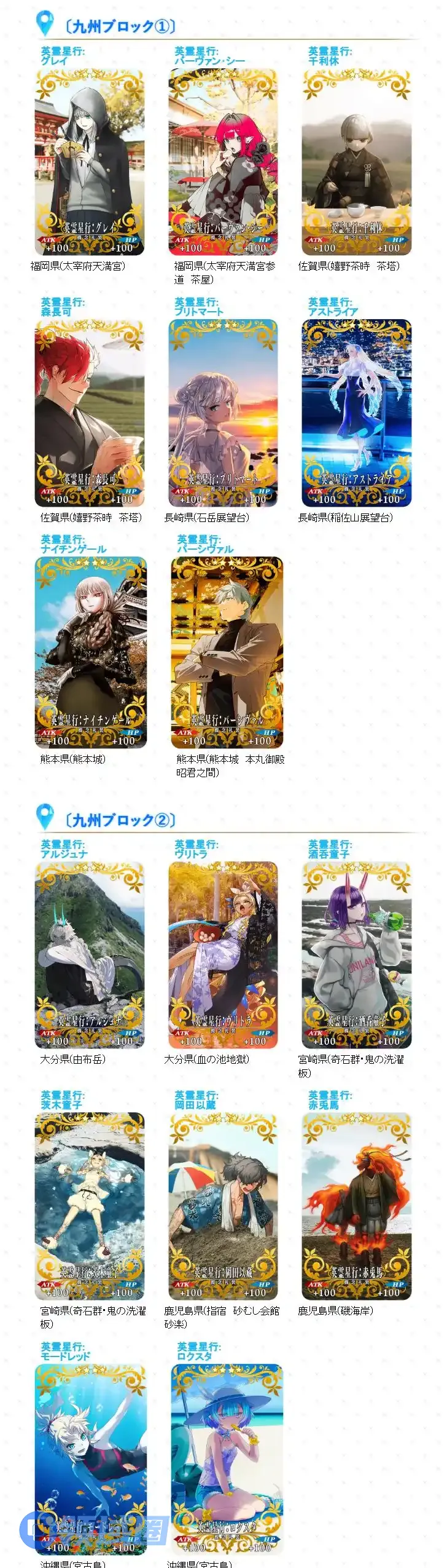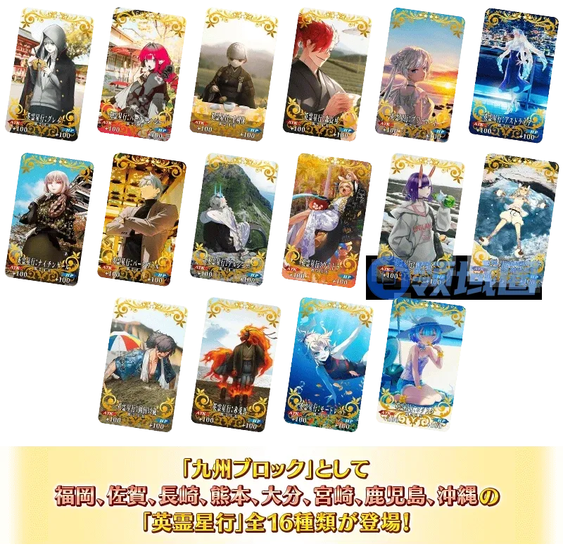 礼装方面,依旧是按地区分成2部分,卡池分成全UP卡池、九州一池和九州二池,礼装总UP率为56%,比起之前的18张,这次只有16张,会比较好捞一些。