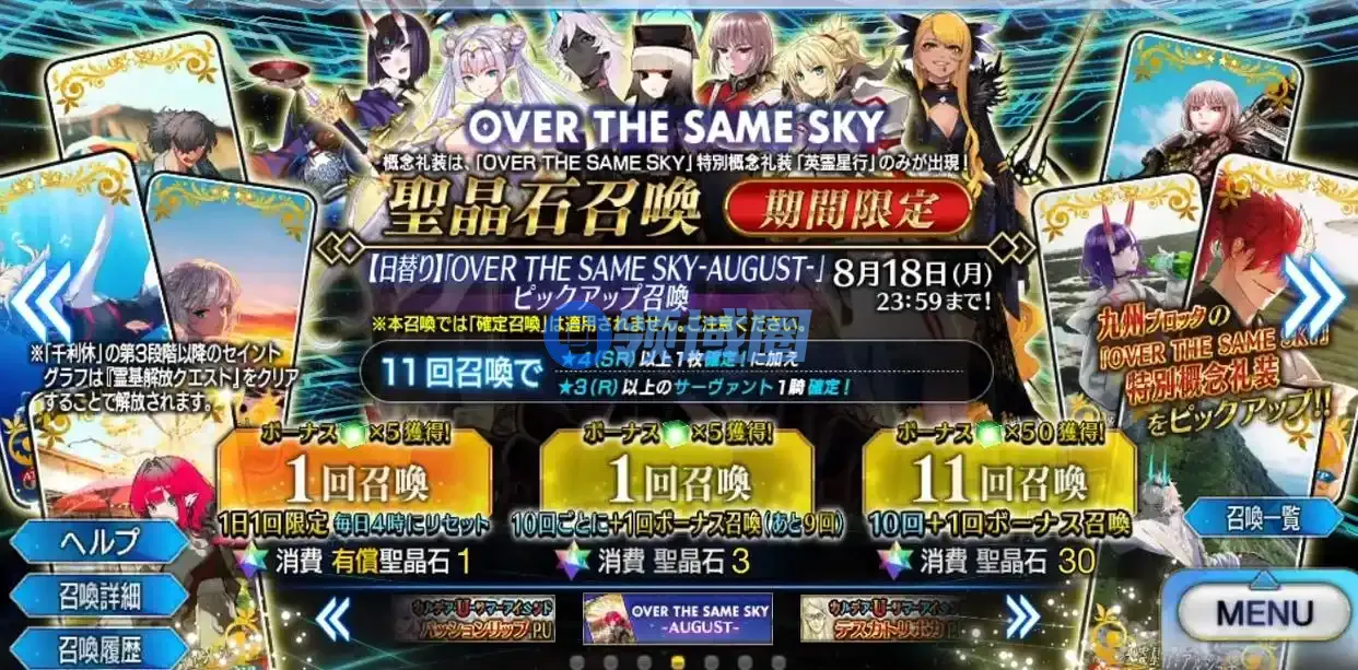 除了自选之外,如果还有其他想要的,本期也依旧会开启纪念卡池,可以抽到本期的礼装和出场的从者。