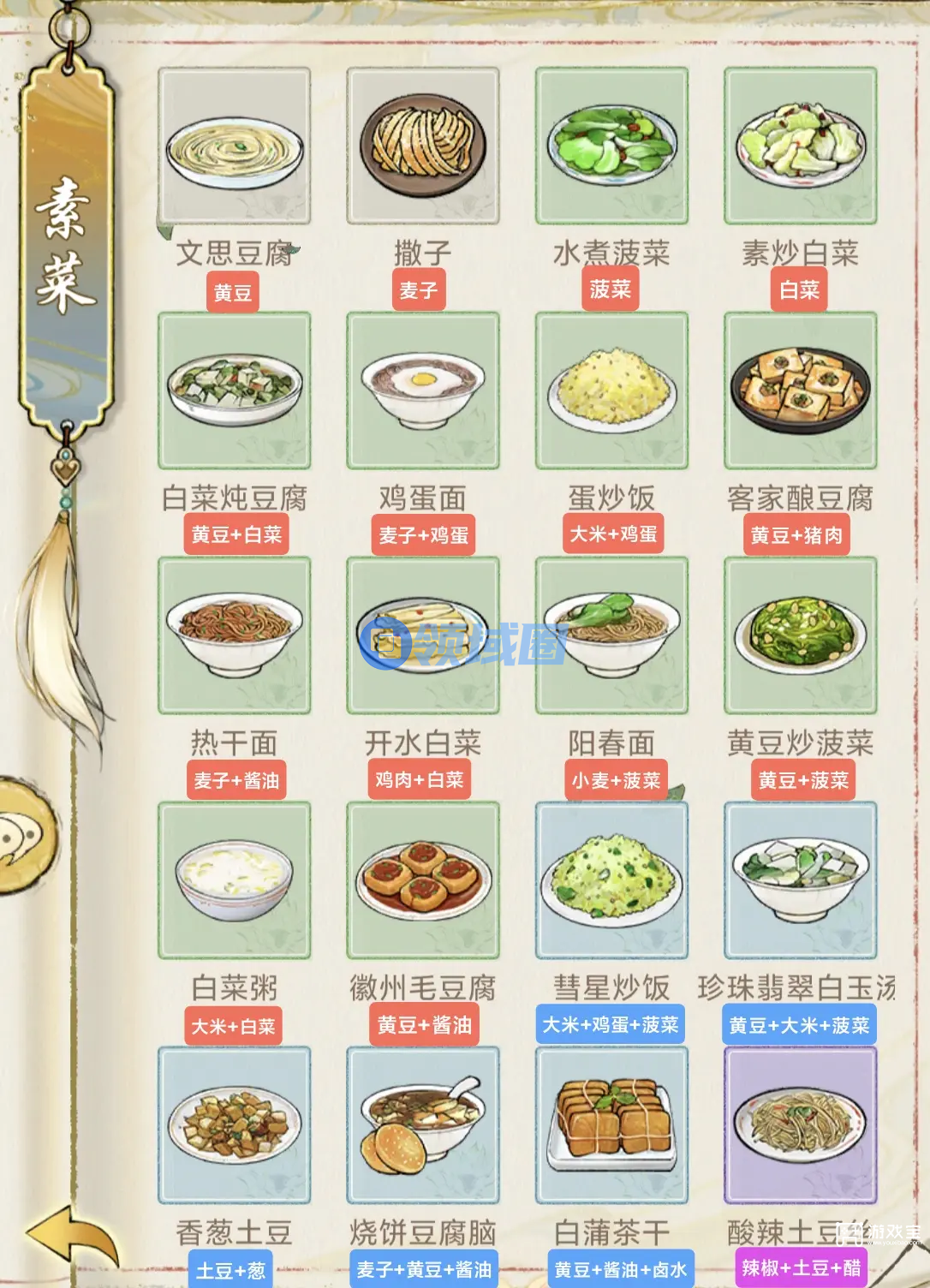 华夏千秋是一款国风回合制的养成手游,游戏中玩家通过游戏类的食材可以制作出不同的食物,其中素菜的菜谱很多玩家不知道有哪些,可以参考华夏千秋素菜食谱大全最新汇总2025。