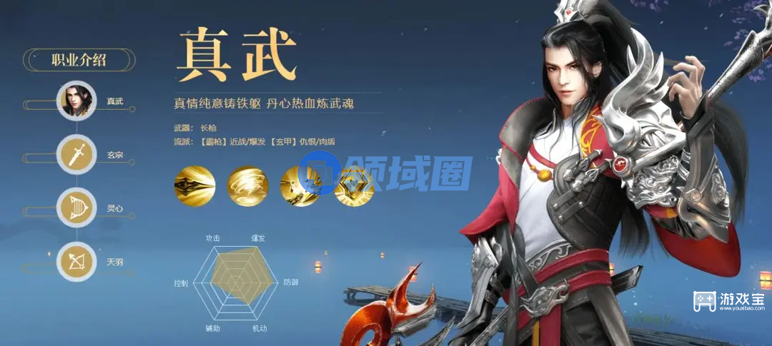 ①:真武 霸枪(近战/爆发);玄甲(仇恨/肉盾)