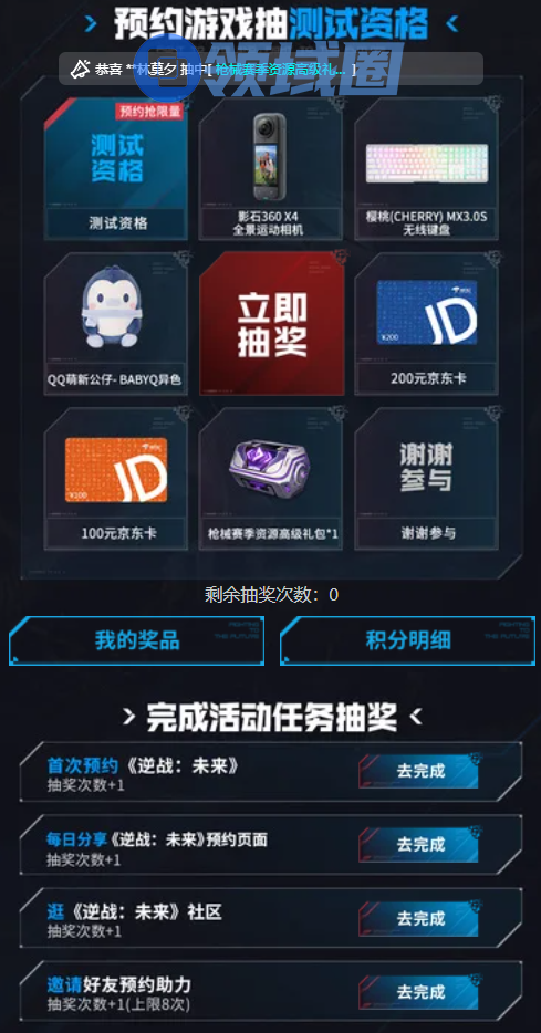 以上就是领域圈游戏为大家带来的逆战未来测试资格抽奖活动在哪参加解答,大家都了解了吗?还想要了解更多的内容那就请继续关注领域圈游戏吧。