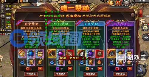 钻石赞助:激活后兵魂 100% 继承主角属性,直升 12 转,升级专属阵法 + 热血神剑,战力飙升,满攻速配合兵魂,清 “Q 版赤月峡谷” 无压力;