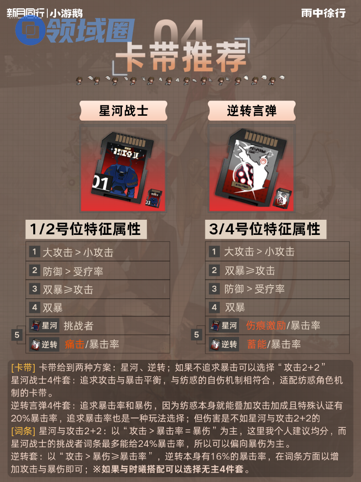 纺惑的卡带选择最推荐选择:星河4件套、其次是攻击2+2