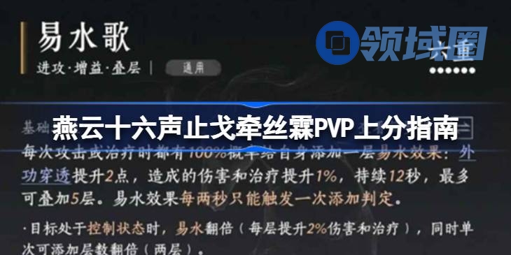 以上就是燕云十六声止戈牵丝霖PVP上分指南的全部内容了,希望玩家额可以顺利的知道怎么进行上分,更多精彩内容请关注领域圈游戏。