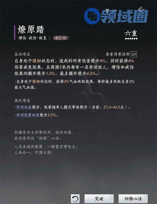 燎原踏:多人止戈中能作为战斗奶妈的选择。