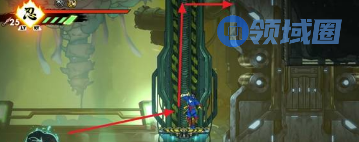 沿尽头的乘风道向上攀爬,途中需巧妙卡位于激光机关中间,熟练掌握滑翔伞操作是关键。
