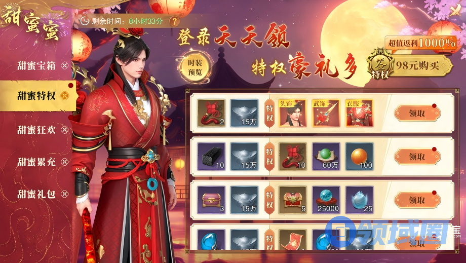 活动期间,可购买超值的甜蜜礼包,助力玩家养成侠客、众生谱、玄晶等。