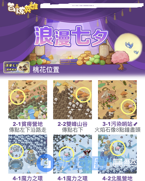 百炼英雄小游戏上线了七夕限时活动,活动中玩家可以根据提示找到桃树的地点,每日走到指定位置后即可自动采集野外桃树,不知道位置的玩家可以参考百炼英雄野外桃树位置一览。