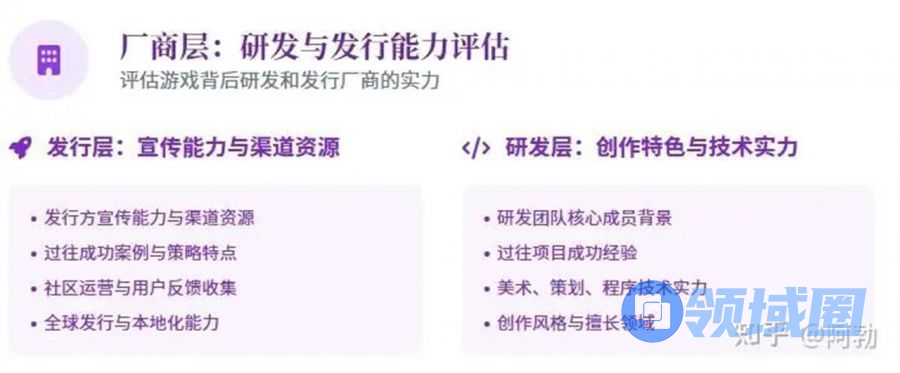厂商层:评测时,也需要考量厂商的角度,如制作组经验、厂商风格、人数规模、营收压力等。