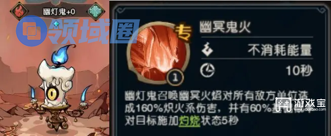 幽灯鬼的技能<幽冥鬼火>可以对所有敌人进行攻击,且有60%的概率附加灼烧效果,先给对面附加灼烧效果是一切的前提。