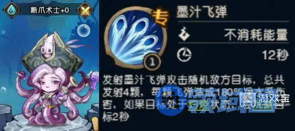 如果担心这样的阵容不稳,也可以考虑把一个输出的角色替换为控制角色,例如【断爪术士】,她的技能墨汁飞弹,如果敌人处于灼烧状态,会被强制沉默。