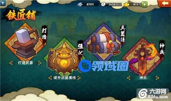 游戏中分为武将武器系统以及主角武器,铁匠铺是城池中打造武器的场所,各位主公可以通过铁匠铺进行武器打造,升级铁匠铺即可增加武器打造的数量种类。