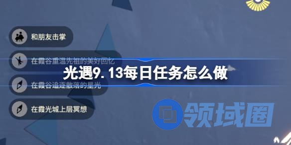 以上就是领域圈游戏为大家带来的光遇9.13每日任务怎么做解答,大家都了解了吗?还想要了解更多的内容那就请继续关注领域圈游戏吧。