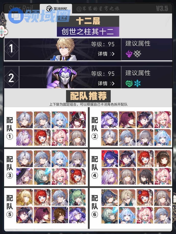 以上就是崩坏星穹铁道3.5下半混沌回忆配队推荐的全部内容了,希望能帮每位开拓者都能拿到满星,更多关于崩铁的相关攻略请关注领域圈游戏。