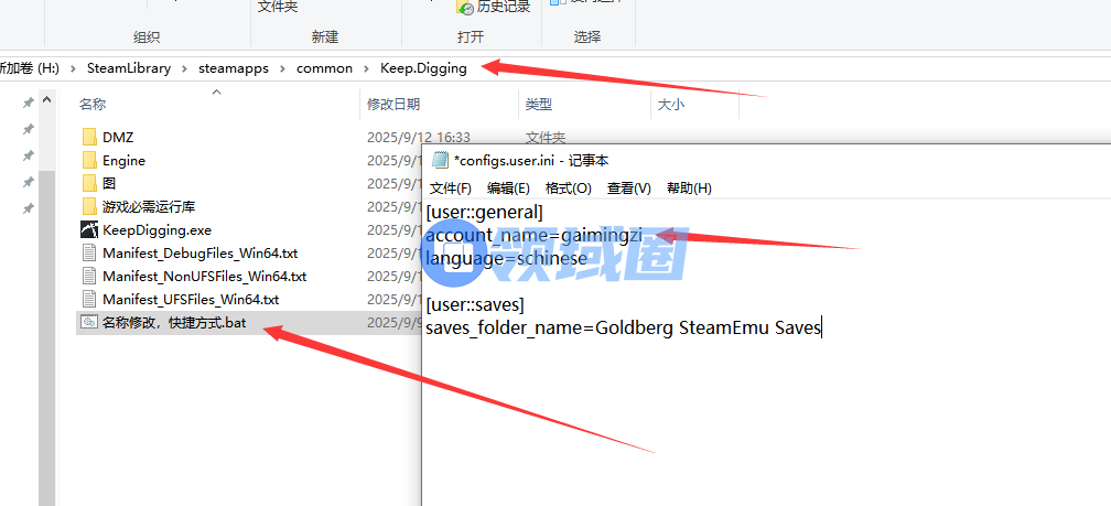 双击打开游戏目录下面的“名称修改,快捷方式.bat”,找到“account_name=gaimingzi”,把“gaimingzi”改成自己想要的名字保存。