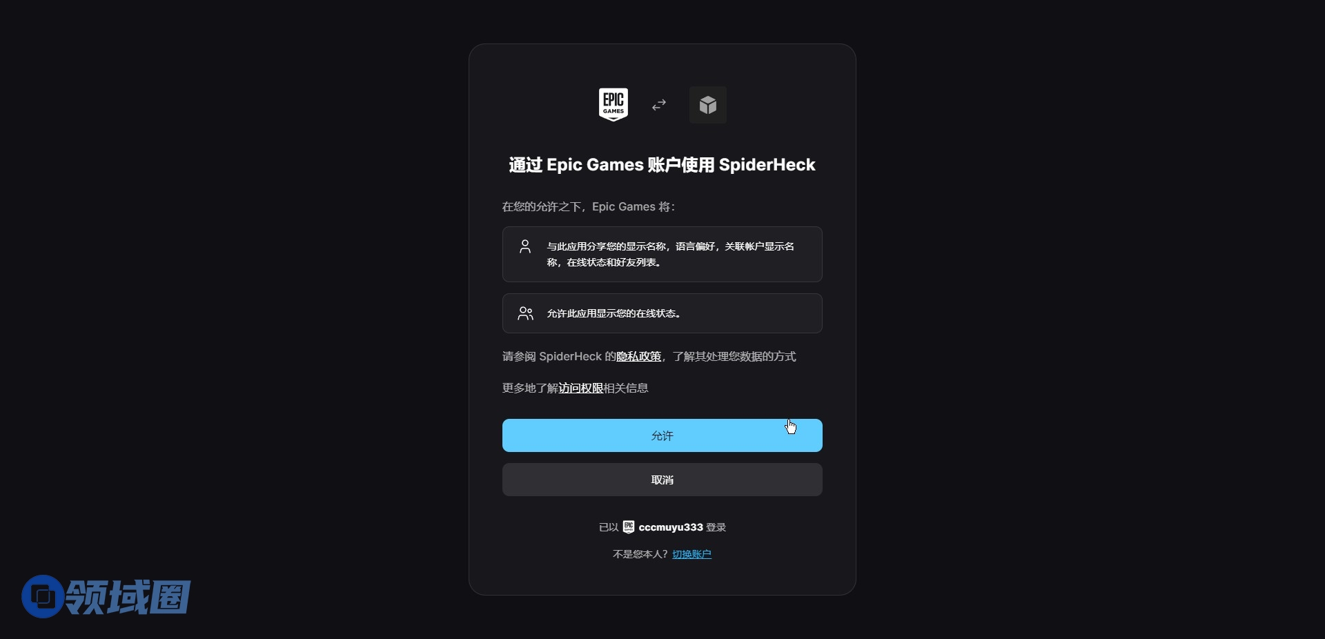 注意:游戏主界面点在线会先自动弹到默认浏览器上,让你登陆一下epic,然后允许一下,你登录之后进到游戏中。(没有账号的话就注册一个epic账号)