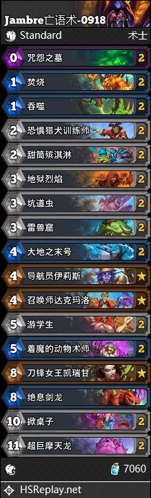 炉石传说亡语术卡组9月
