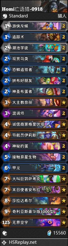 炉石传说迷你包已经上线一段时间了,那么大家知道在本周有什么强力的上分卡组呢?下面为大家带来的炉石传说亡语猎卡组内容,感兴趣的玩家们千万不要错过哦!