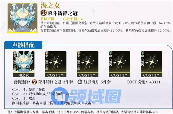 尤诺专武+天赋自带49%暴击率,主属性优先选择暴伤