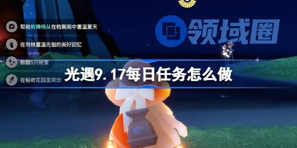 以上就是领域圈游戏为大家带来的光遇9.17每日任务怎么做解答,大家都了解了吗?还想要了解更多的内容那就请继续关注领域圈游戏吧。