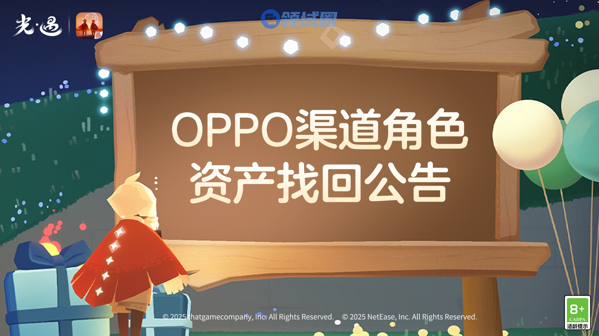 感谢您一直以来给予《光·遇》OPPO渠道版本手机游戏的支持与厚爱!《光·遇》OPPO渠道版本手机游戏将于2025年9月19日10时停止部分游玩功能、游戏充值及新用户注册,并同时开启OPPO角色资产找回服务,现将相关事项通知如下: