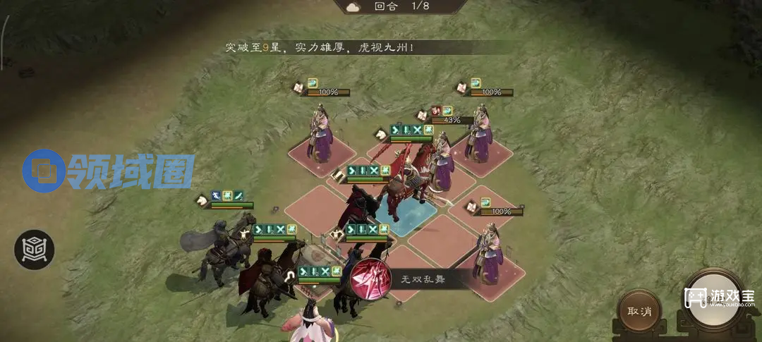 关羽(或吕布、夏侯渊)释放群伤技能,一次性秒杀所有敌军。若输出不够,先让曹操、刘备等释放增伤技能再打。