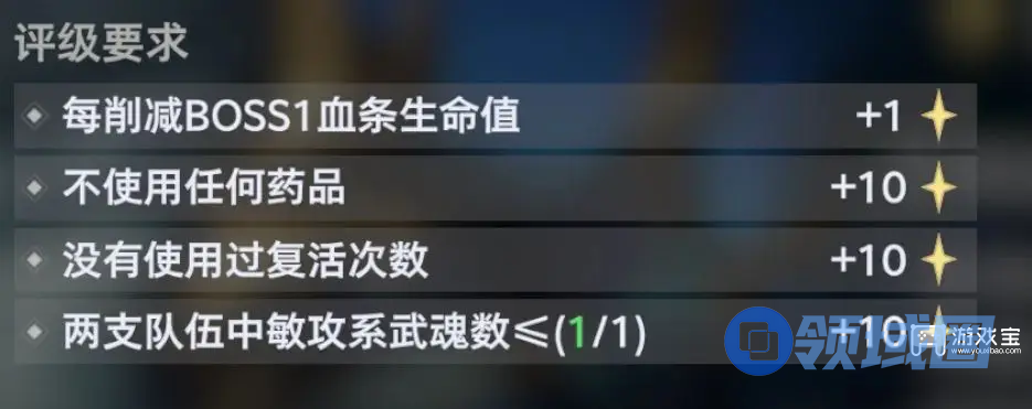 4、然后这个boss的四个挑战积分,其中最恶心的就是第4个,两支队伍只能共计上1个敏攻系魂师,而如果大家的主C是蓝龙这种其实还好,但如果遇上戴沐白或是锤三这种很需要敏攻副C的情况,其中一支队伍的伤害就会有一定下滑了,这里推荐第一场战斗大家可以不上敏攻系角色。