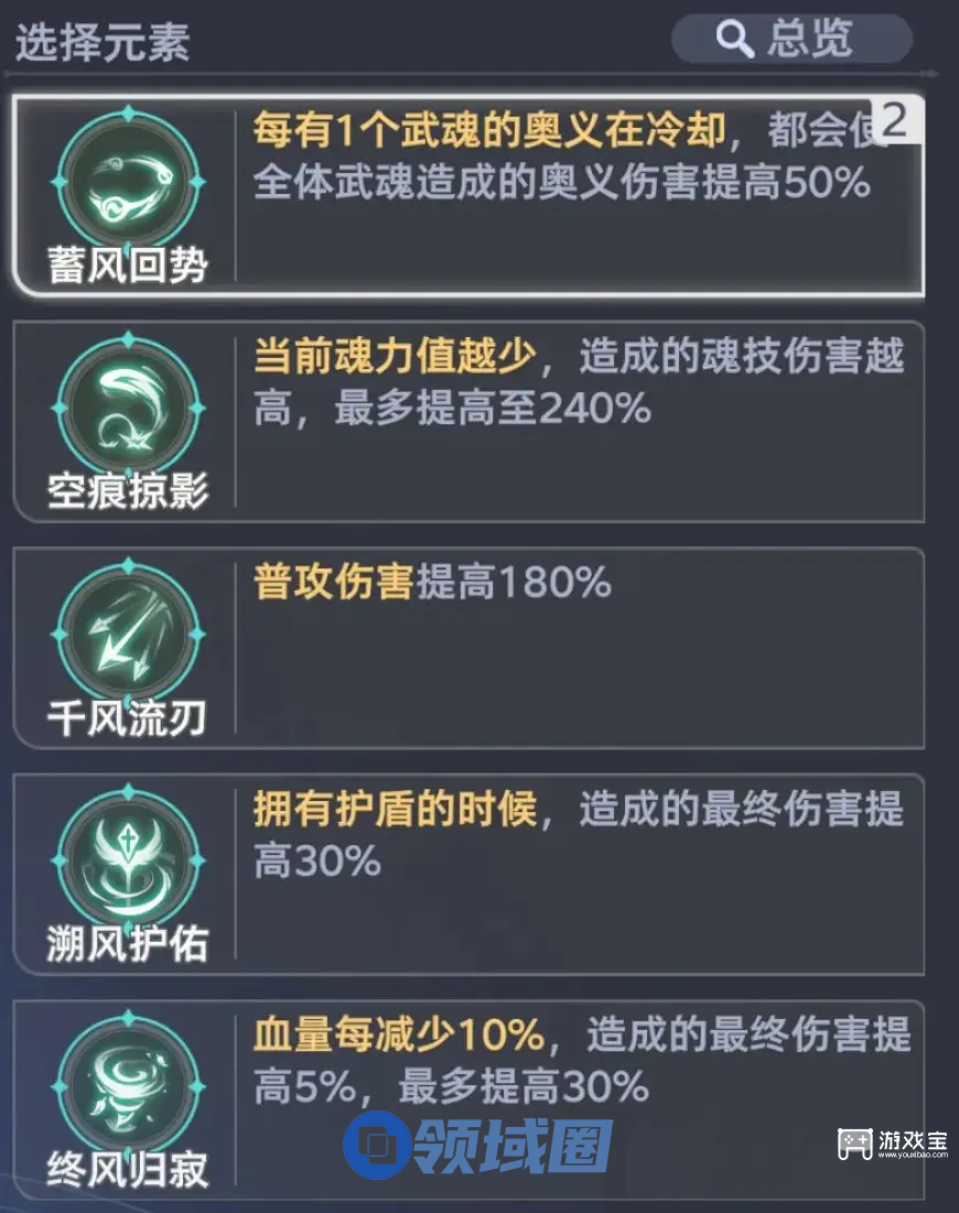 ⑤终风归寂:血量得降到60%时才能具备最高30%的增伤,虽然按照boss的伤害我们想要降低血量并不难,但这个低血量在boss面前还是挺危险的,大家慎用。