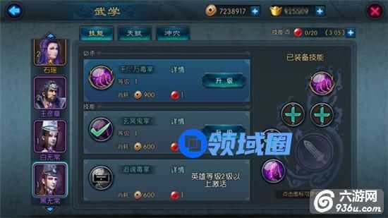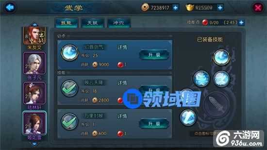 在游戏中,技能的等级提升需要消耗铜币以及技能点,技能点满值为20点,消耗后可跟随时间流逝而恢复。并且,技能的等级受到角色等级的限制(如:角色等级为x级,则技能等级只能升到x级)。