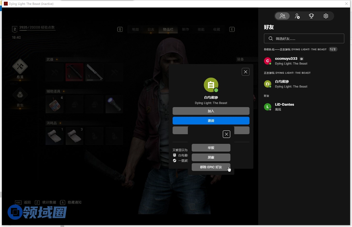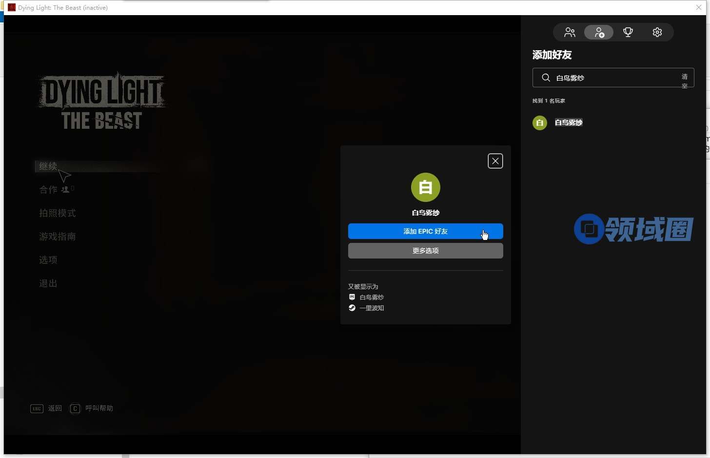 注意:游戏中同时按Shift+F3键,呼出epic列表,里面可以相互加EPIC好友或者删除好友。加了好友之后才能在好友列表找到他。游戏中按Shift+F3键呼不出epic列表的话,可以在epic官网或者epic客户端相互加好友。