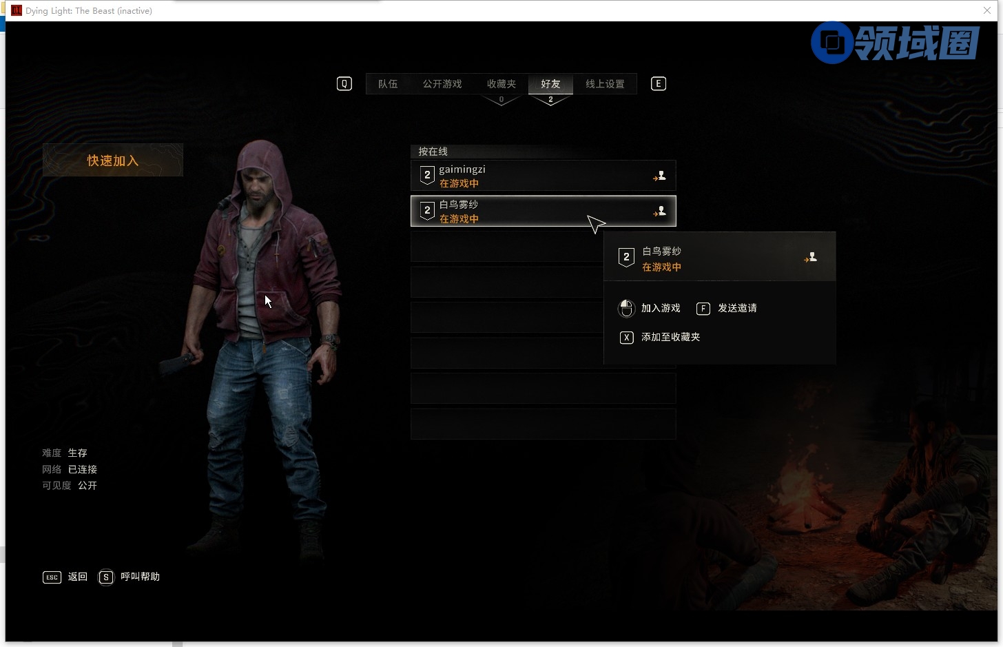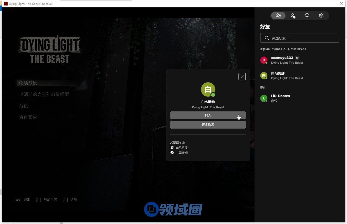 1:通过游侠对战平台《消逝的光芒:困兽》房间进入游戏。