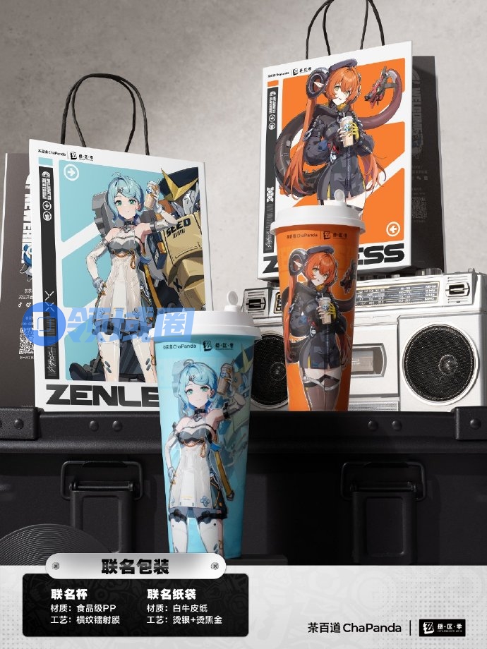 联名双杯纸袋:AB双面角色设计,烫银+烫黑金工艺,质感满满~
