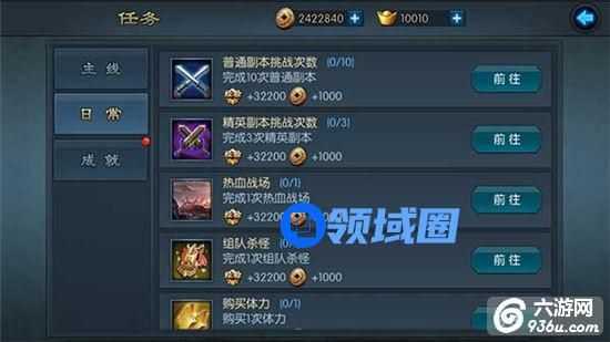 当玩家的等级达到一定等级后,便会开启日常与国家任务。这两项任务会获得大量的经验,而且国家任务的次数是会随着时间的流逝而慢慢恢复的,所以要优先完成国家任务。