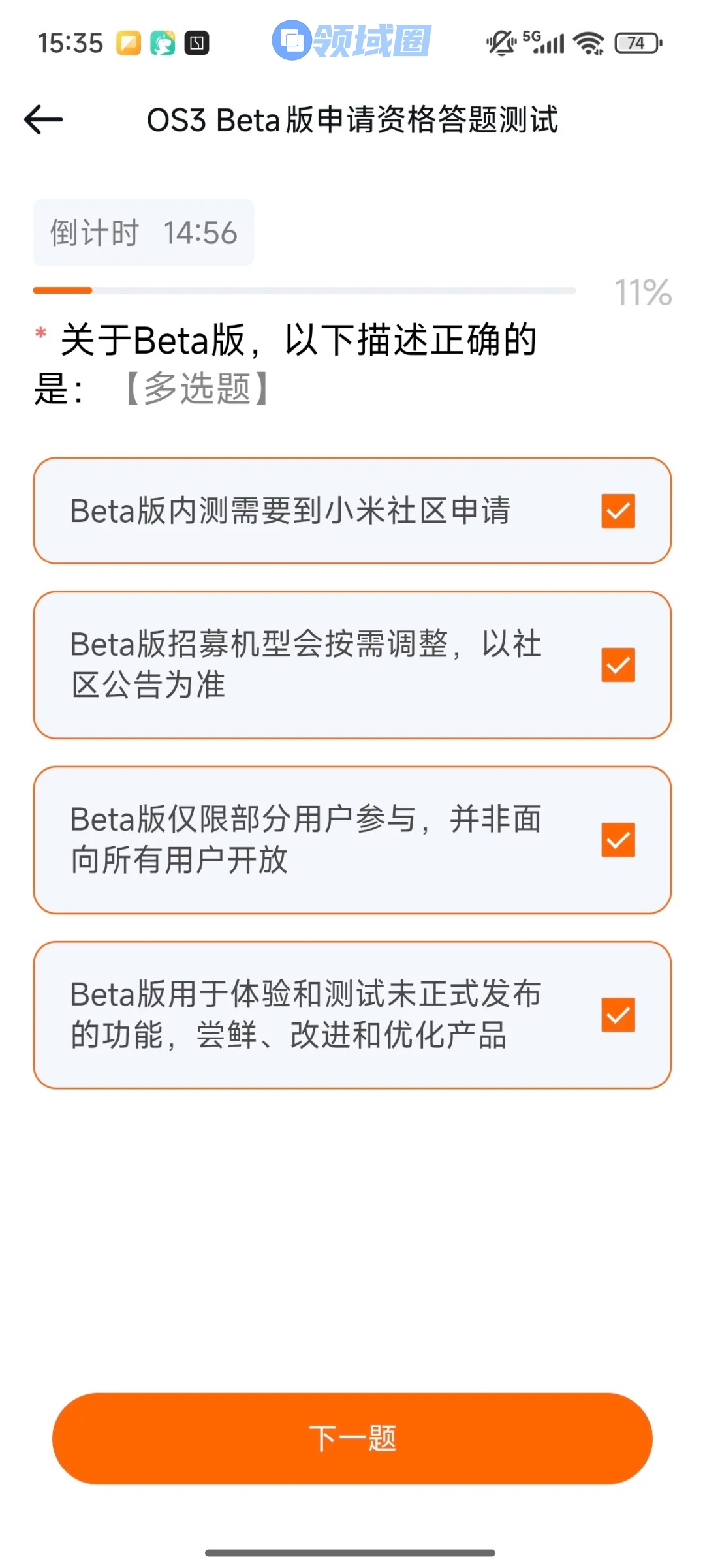 小米澎湃os3已经开启了内测申请,在本次内测申请中需要用户进行一次答题,很多用户都不清楚本次内测申请的答案是什么,下面快跟随领域圈小编一起来看看小米澎湃os3内测申请答题答案大全吧。