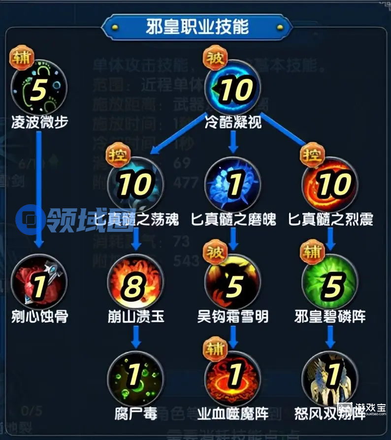 1、邪皇阶段的加点堪称一门 “取舍艺术”。凌波微步必须加满,它提供的大幅度移速加成和躲闪加成,是邪皇机动性的核心保障。