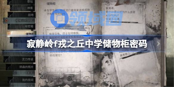 以上就是领域圈游戏为大家带来的寂静岭f戎之丘中学储物柜密码是什么解答,大家都了解了吗?还想要了解更多的内容那就请继续关注领域圈游戏吧。