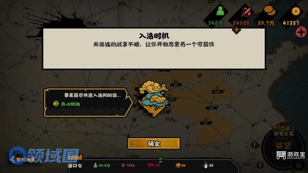 开局先触发剧情事件,在剧情战斗【大海寺之战】后,触发事件【入洛时机】