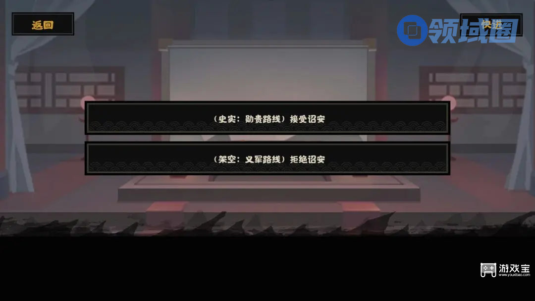 接受诏安后,可触发剧情战斗【鏖战骁果军之战】,战斗胜利后,选择架空选项,即可触发【童山之战】,战斗胜利后可吞并隋。