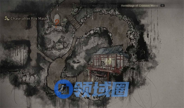3、谜题完成后水域变红,返回表世界后可在稻荷神社右侧水盆处净化灵刀。