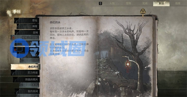 2、解开赤红的水谜题:按照符号提示依次敲响三个风铃(水边石碑附近可查看顺序)。