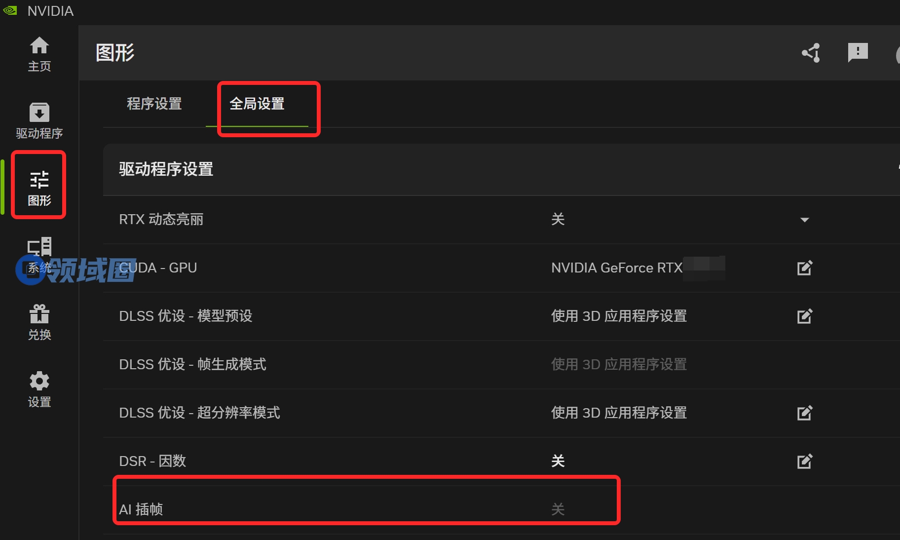 方法一:在“NVIDIA APP > 图形 >全局设置”中,关闭 AI 插帧。