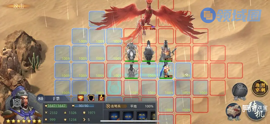 于禁:七星80级90专武,100攻防果子,五星黄肩弩+四星凤凰羽衣+五星乌骓