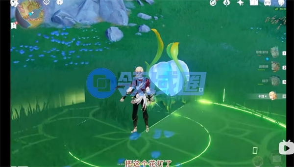 2、向小地图西北方向走,找到一朵蓝色花朵并攻击。