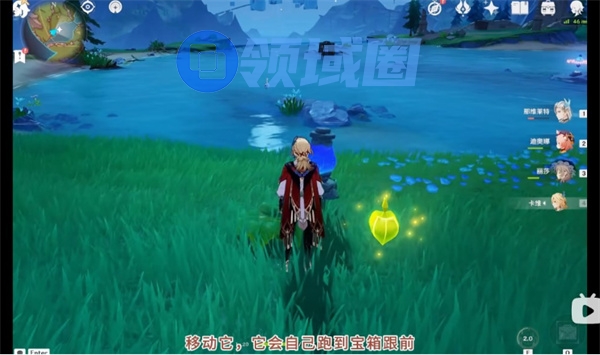 3、出现水元素晶体,选择【移动】,晶体会自动移动到宝箱旁。