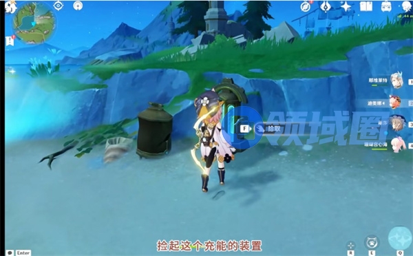 7、前往附近的笼子,将充能装置放置进去,释放被困的水元素晶体。