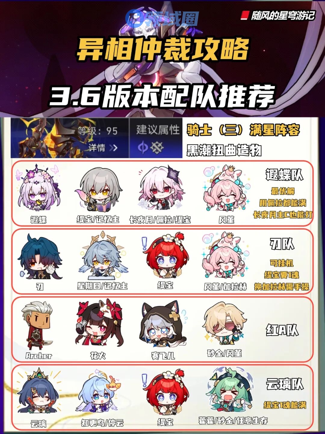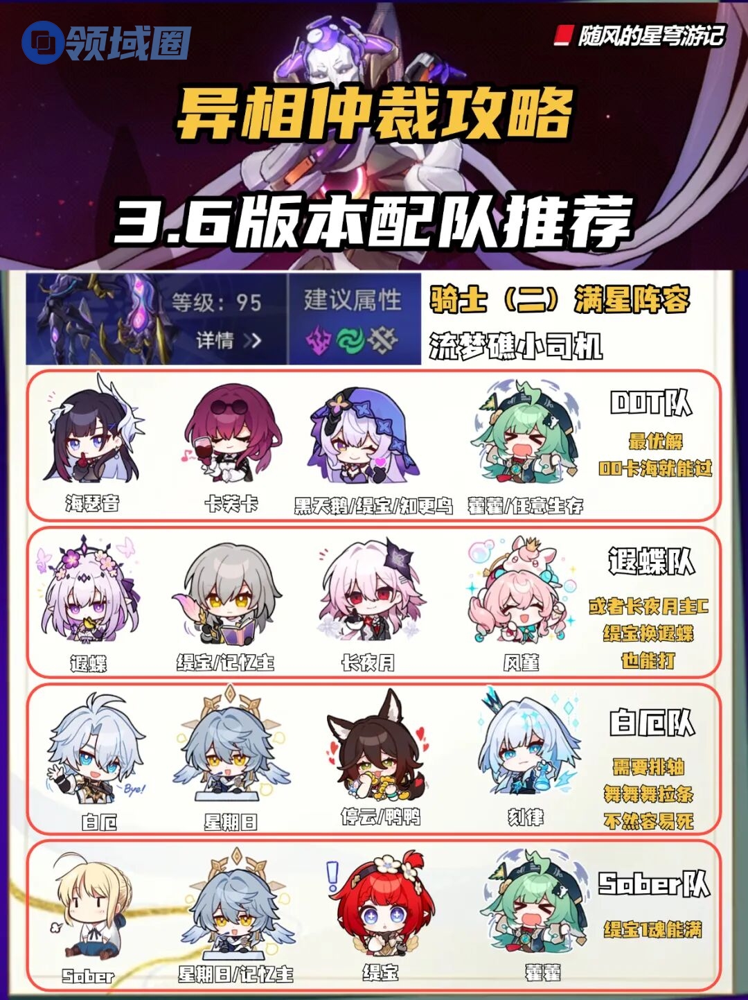 崩坏星穹铁道3.6版本上线了新挑战异相仲裁,异相仲裁是高难本,打完没有星琼奖励,但是可以兑换新的宠物,那么大家知道怎么搭配阵容吗?下面快跟随领域圈小编一起来看看崩坏星穹铁道异相仲裁阵容推荐吧。