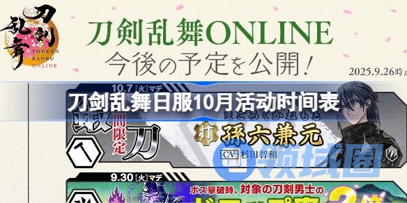 10月就要来了,相信有不少的刀剑乱舞日服玩家想知道2025年10月都有哪些活动吧,这里领域圈小编将为大家带来刀剑乱舞日服10月活动时间表,让我们一起来看看刀剑乱舞日服10月有哪些活动2025吧。